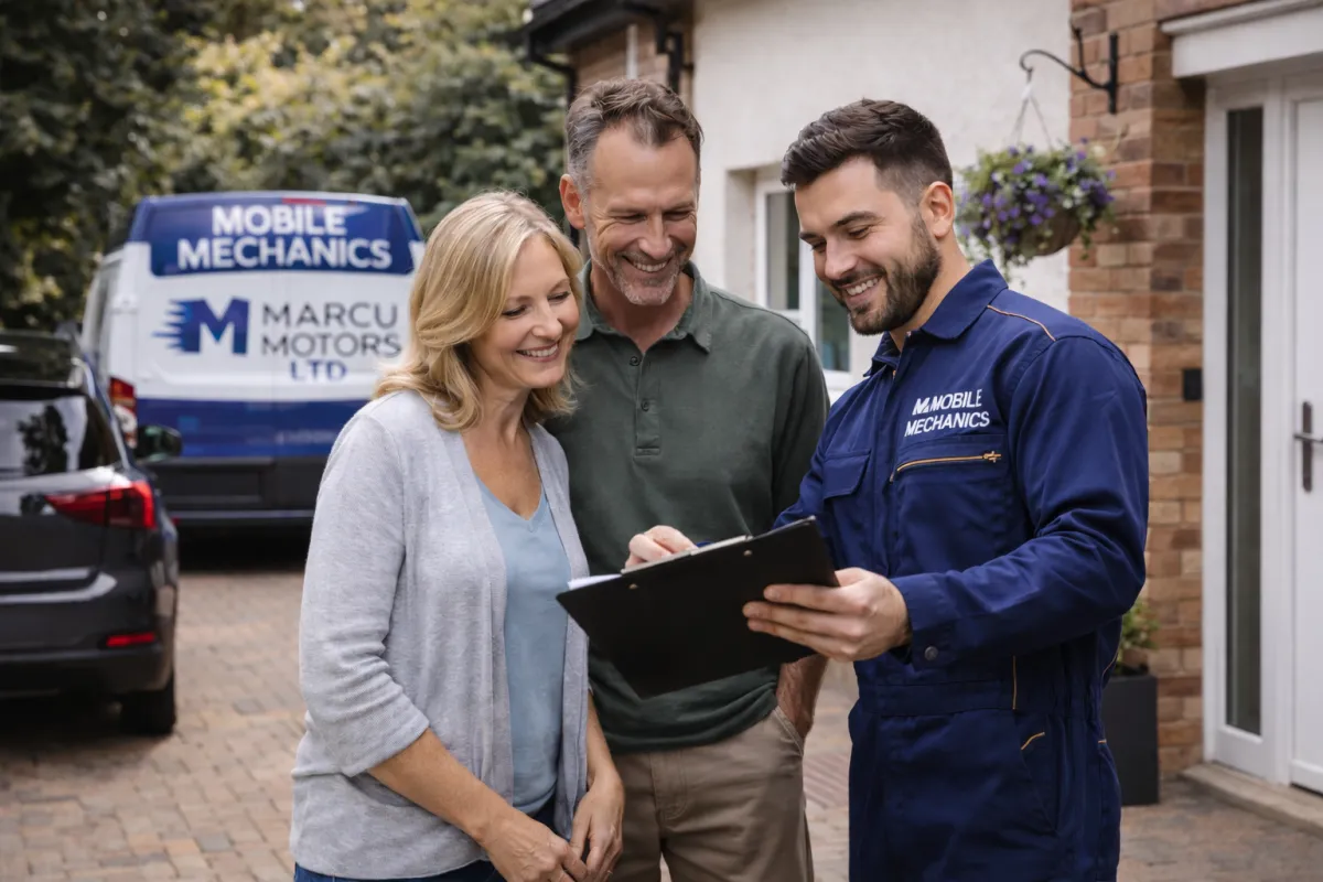 At Marcu Motors Ltd, we bring professional, dealer-level car care directly to your doorstep. As a fully mobile mechanic service, we save you time and hassle by coming to you, whether you’re at home, work, or on the roadside.
